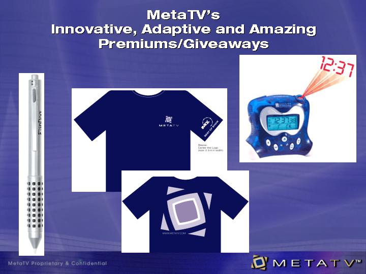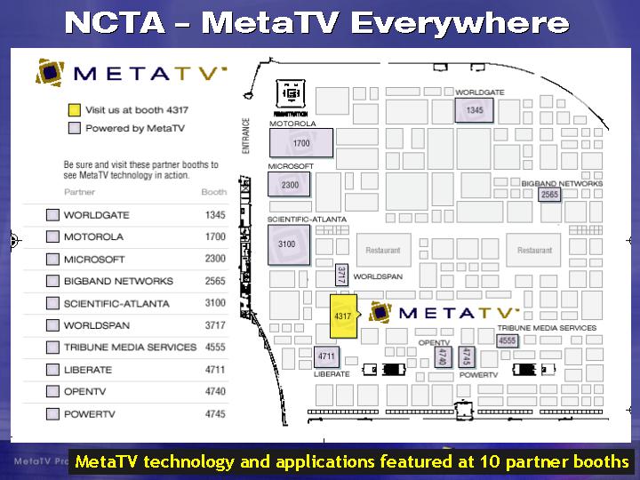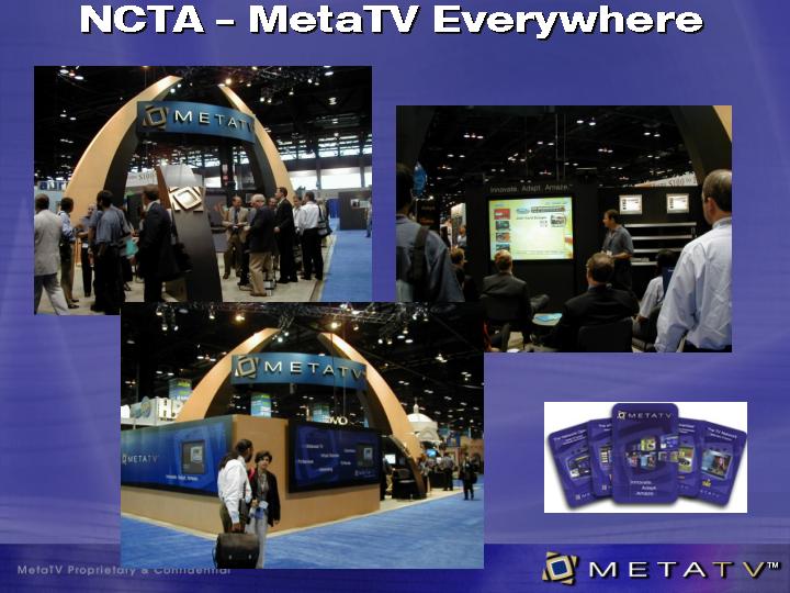 Prior to our marketing campaign, MetaTV had participated in two industry panels. Since June 2000, MetaTV has been invited to and has presented at over 40+ keynotes and panels at major industry events.