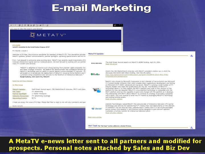 I added this web page to the MetaTV Intranet to update all of the new employees who were curious about our marketing strategy